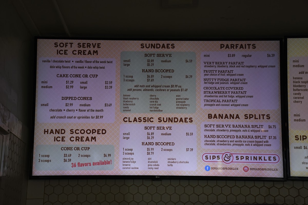 Welcome to Sips and Sprinkles, a delightful ice cream haven located at 221 W Locust St, Belvidere, IL. This charming establishment offers a menu packed with sweet indulgences that cater to all dessert lovers. The standout item, the Tornado, comes in a range of sizes from a Mini to a Large, perfect for those wanting to experience a whirlwind of flavors, especially the popular banana split tornado. For shake enthusiasts, the menu also features delectable offerings—including Mini, Small, Medium, and Large Shakes and Malts, all crafted with freshness at heart. And don’t overlook their smooth Cold Brew Coffee, which pairs wonderfully with any sweet treat.